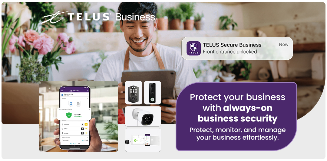 “Security isn’t optional anymore. With smarter cameras, instant sensors, and automation that never forgets, TELUS Secure Business keeps watch — so you can focus on running your business.”